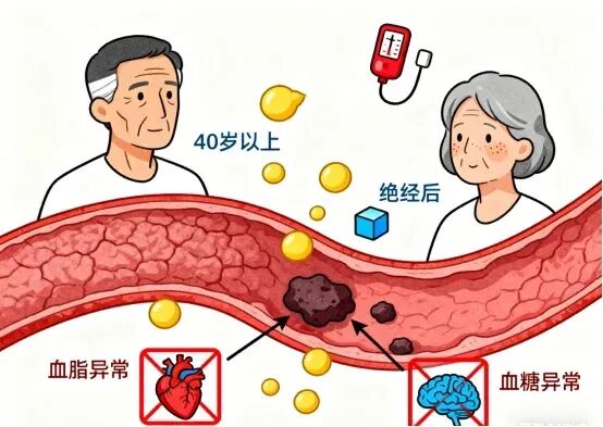 与年龄相关:男性40岁以上、女性绝经后,血管壁会逐渐硬化,可能伴有血脂异常、血压偏高、血糖异常等问题,机体处于“易栓状态”,容易形成血栓,导致心梗、脑梗等疾病。