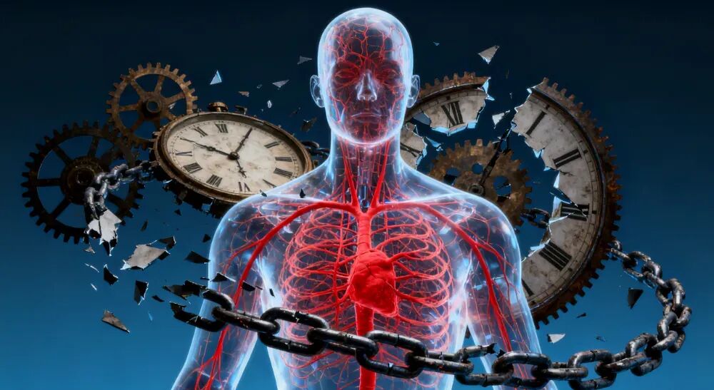 先从最小的地方——细胞说起。我们的染色体末端有一段“保护帽”,叫端粒。它就像鞋带上的小塑料头,可以防止基因磨损。长期压力会让这个保护帽变短,让身体提前进入衰老模式[2]。与此同时,压力还会让细胞出错、能量不足,就像工厂机器长期超负荷,零件开始松动。