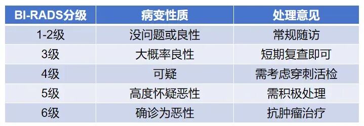 手术活检:少数情况用,筛查报告中常用BI-RADS0~6级,BI-RADS4类以上才建议活检。局部麻醉后切个1~2厘米的小口,把病灶取出来,缝1~2针,一周拆线,疤痕也不明显,手术活检可同时切除小病灶,若确诊为恶性,可能已起到治疗作用。