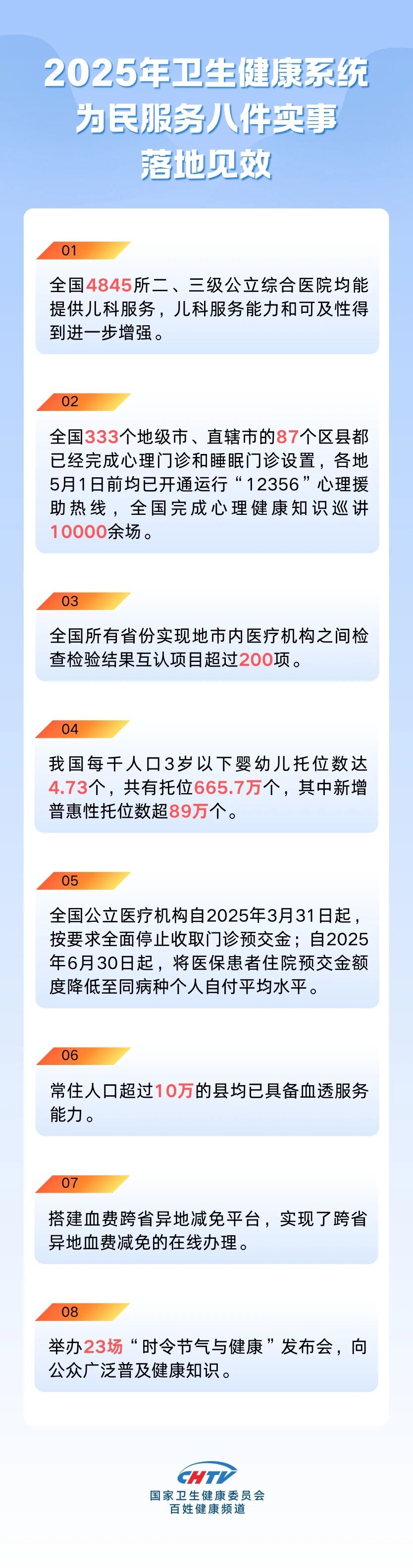 聚焦民生福祉 办好健康实事——2025年卫生健康系统为民服务八件实事落地见效