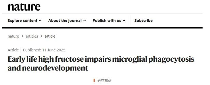 [12]Wang,Z.,Lipshutz,A.,MartínezdelaTorre,C.etal.Earlylifehighfructoseimpairsmicroglialphagocytosisandneurodevelopment.Nature(2025).https://doi.org/10.1038/s41586-025-09098-5