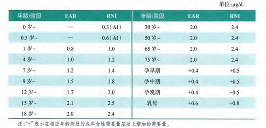 表1 中国居民膳食维生素B12参考摄入量