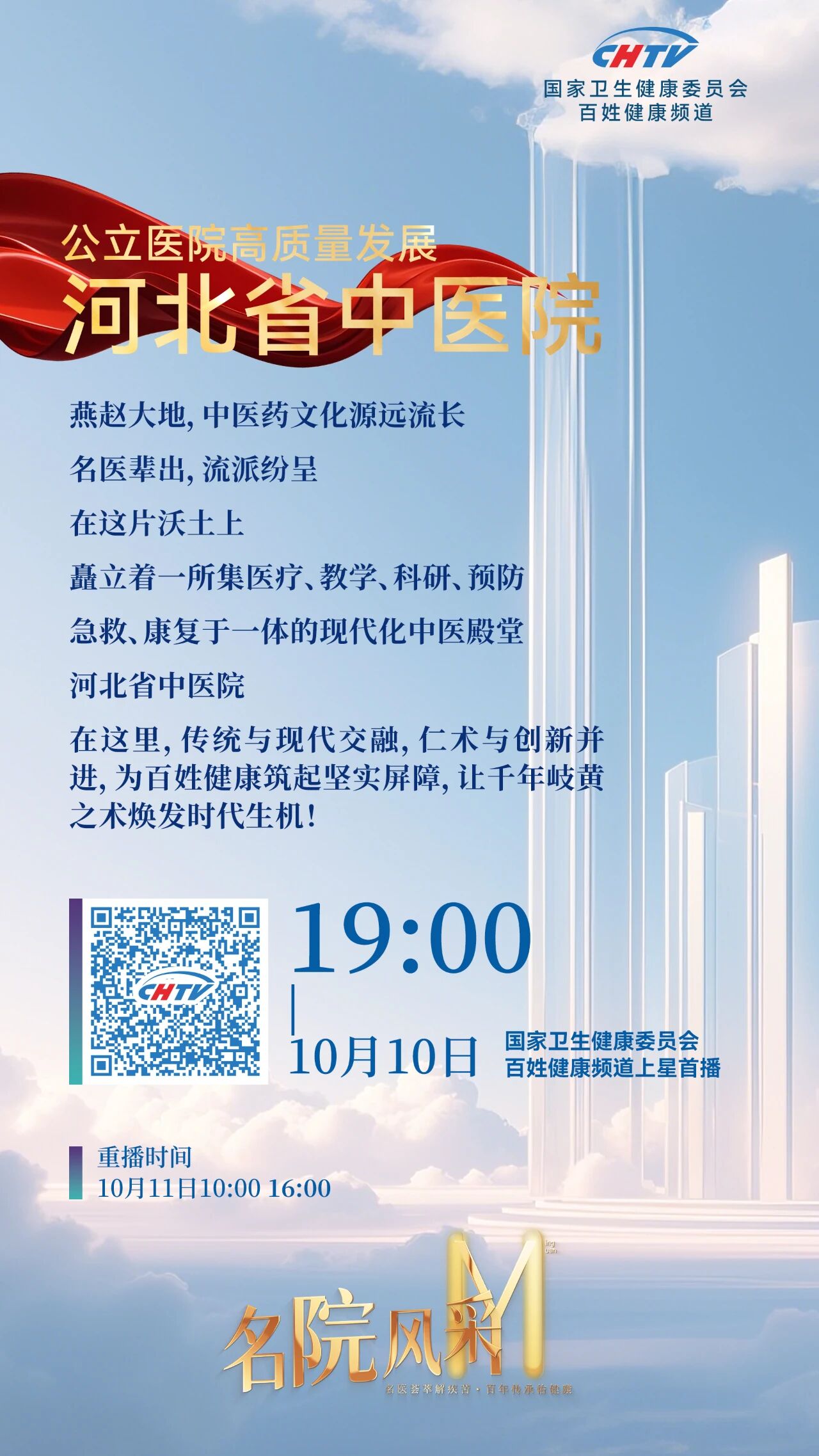 直播预告|《公立医院高质量发展:河北省中医院》10月10日(明日)19:00 首播