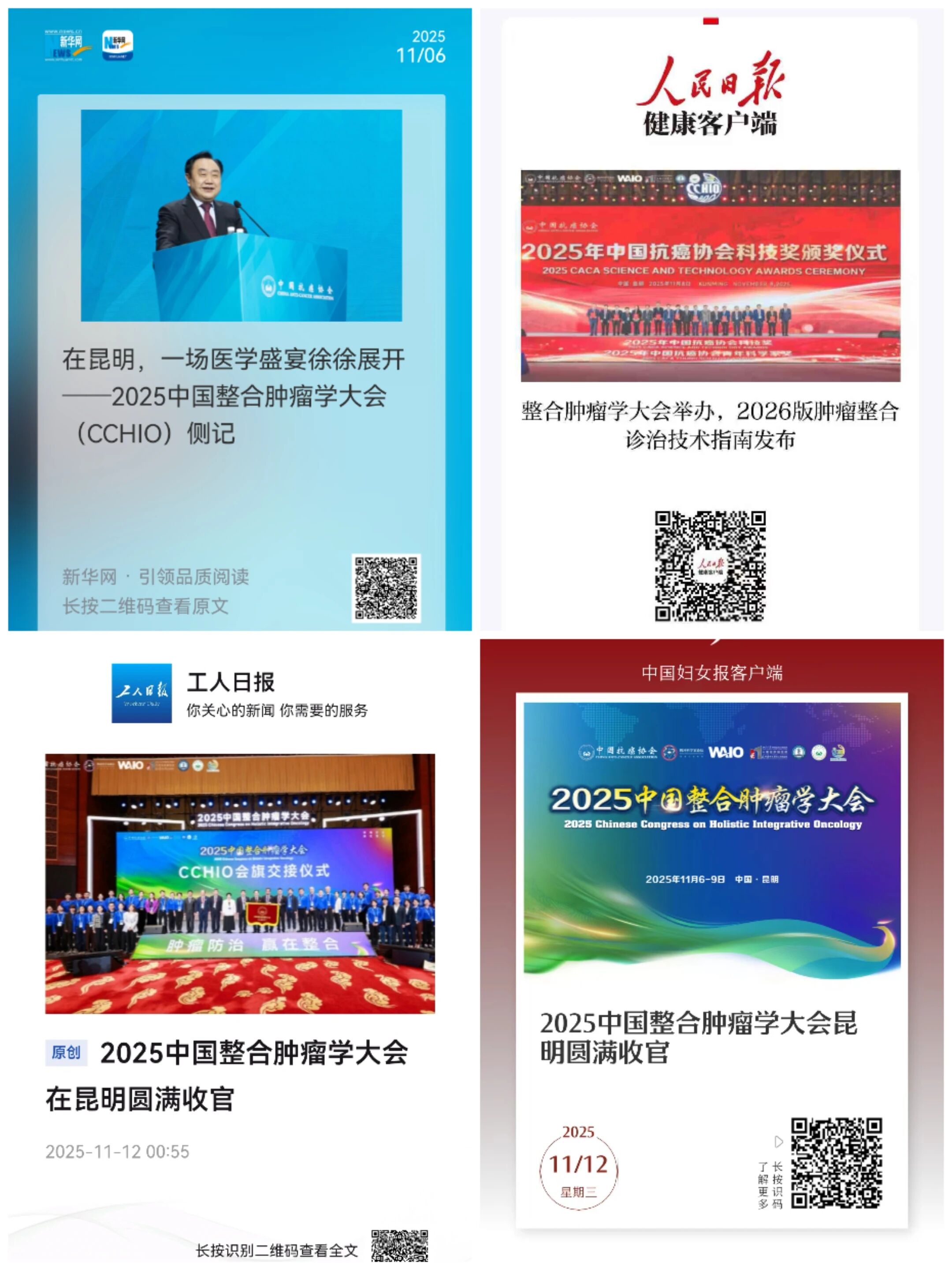 2025年11月6日至9日,2025中国整合肿瘤学大会(CCHIO)在昆明隆重召开。本次大会由中国抗癌协会(CACA)、腾冲科学家论坛组委会办公室联合主办,世界整合肿瘤学会(WAIO)、中国整合医学发展战略研究院共同主办,云南省肿瘤医院、昆明医科大学、云南省抗癌协会共同承办。