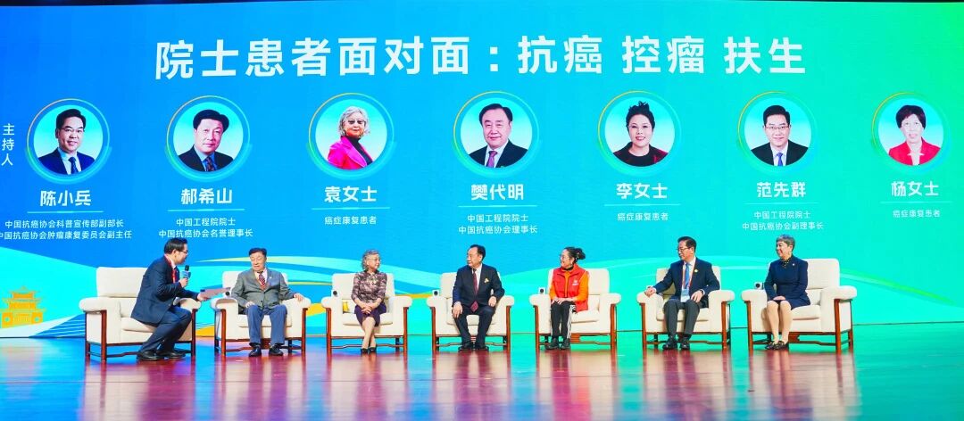 “院士患者面对面”环节,三位康复者分享经验:杨红践行“观察等待”策略,李玉玲以健康生活实现长期康复,袁淑华投身公益传递温暖。范先群院士强调全周期规范治疗,郝希山院士肯定科普对提升抗癌信心的作用,樊代明院士提出“抗癌-控瘤-扶生”三级策略,陈小兵教授的主持营造了温暖氛围。