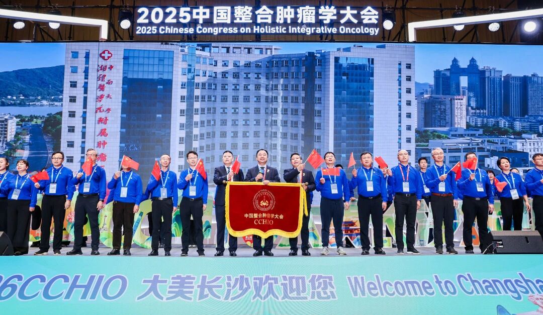 湖南省肿瘤医院院长向华,副院长周辉、毛先海接过CCHIO大会的旗帜——从这一刻开始,CCHIO大会正式进入“湖南时间”!