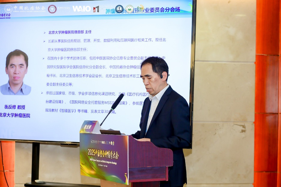 随后,专委会秘书长、北京大学肿瘤医院衡反修主任作了全委会工作报告,系统总结了2025年在组织建设、学术交流、CCHIO大会参与、标准制定等方面的工作成果,并展望了2026年的发展重点,强调将继续深化医信融合,推动肿瘤诊疗智能化进程。