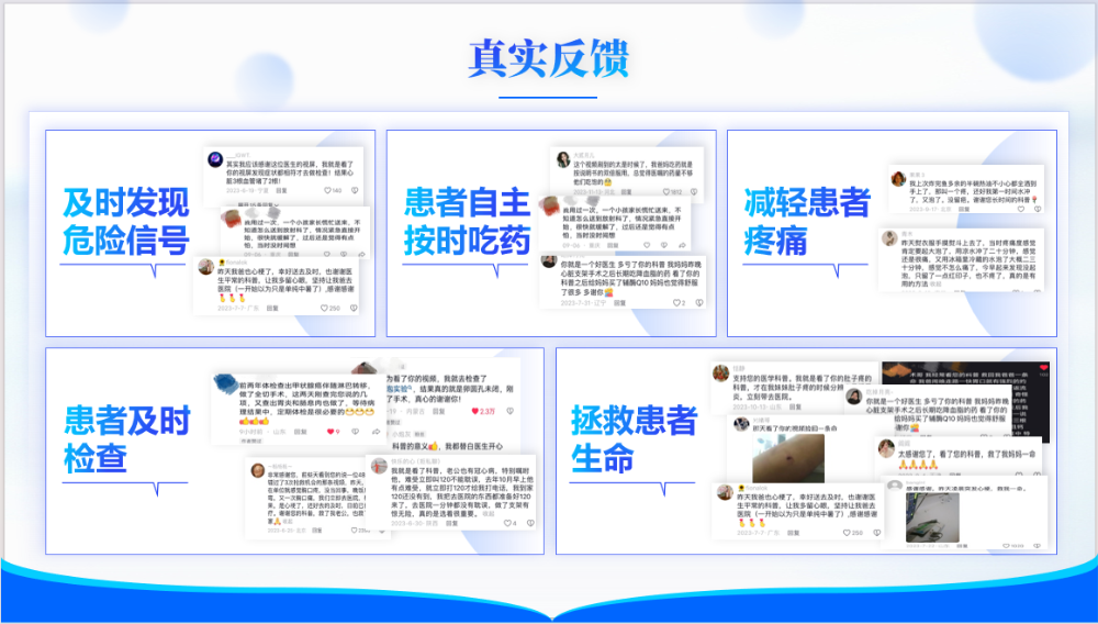这些真实案例涵盖了疾病预防、急救处理、用药安全等多个领域。有患者因科普视频按时服药、定期检查,有效控制了慢性病情;有家属凭借学到的海姆立克急救法,成功救助了窒息的孩子;更有不少人通过科普纠正了“双倍用药效果更好”“烫伤抹酱油”等错误认知。每一条留言背后,都是科普为生活带来的积极改变,也印证了医学科普是医生与患者之间沟通的有力桥梁。