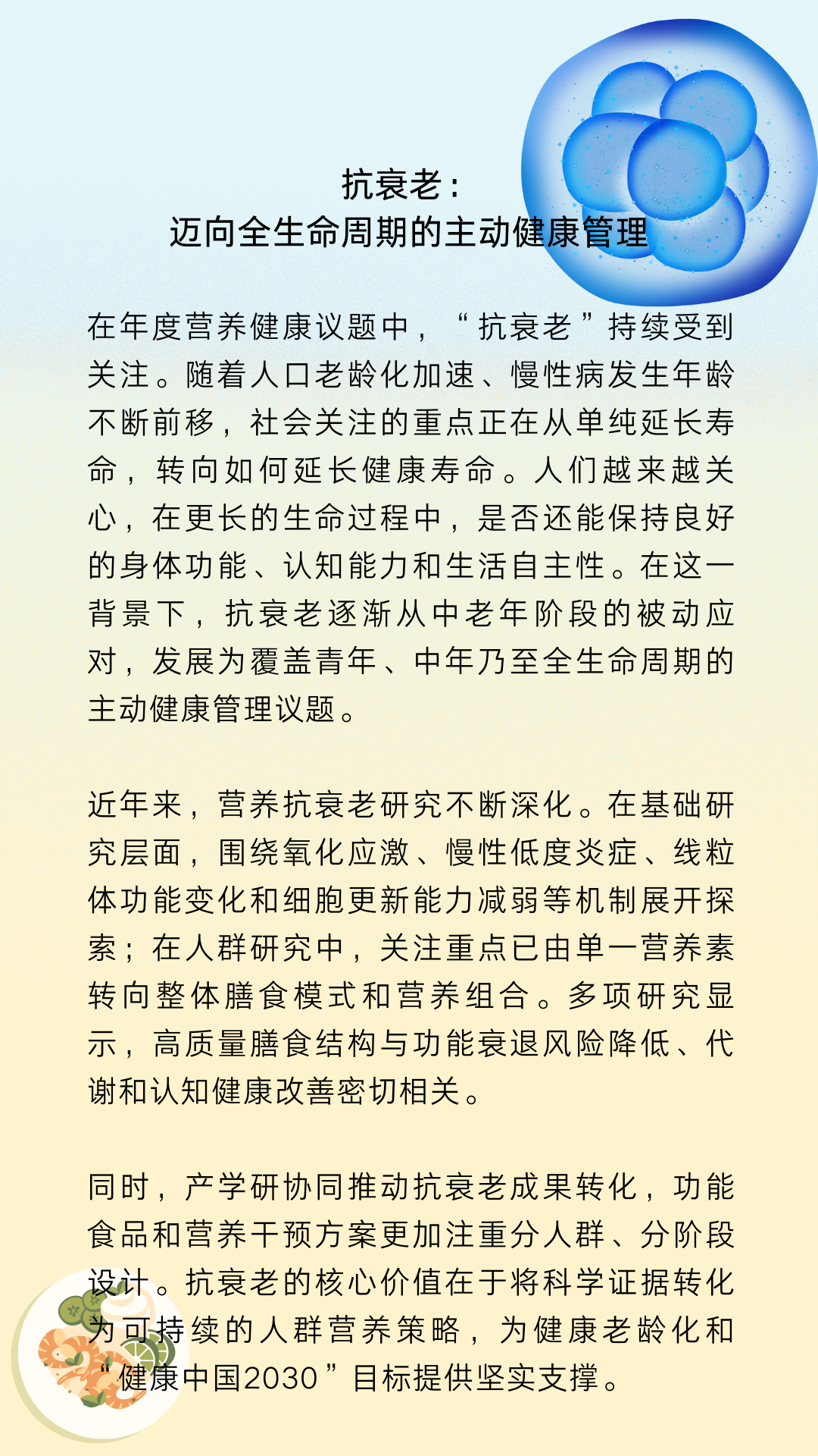 回顾“2025年度十大营养热词” ——“体重管理”“抗衰老”“肠道健康”“睡眠健康”“微塑料”“预制菜”“健康老龄化”“智慧食堂”“抗炎饮食”“免疫力”,正是这一年公众健康关切的集中缩影。它们不仅记录了2025年的健康探索足迹,更为2026年的科学健康之路指明了方向。