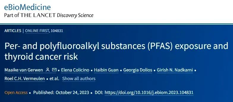 《柳叶刀》子刊" eBioMedicine "上发表的一项研究显示,较高的血浆PFAS水平与甲状腺癌风险增加相关,n-PFOS浓度每增加一个四分位数,甲状腺癌诊断率增加56%。